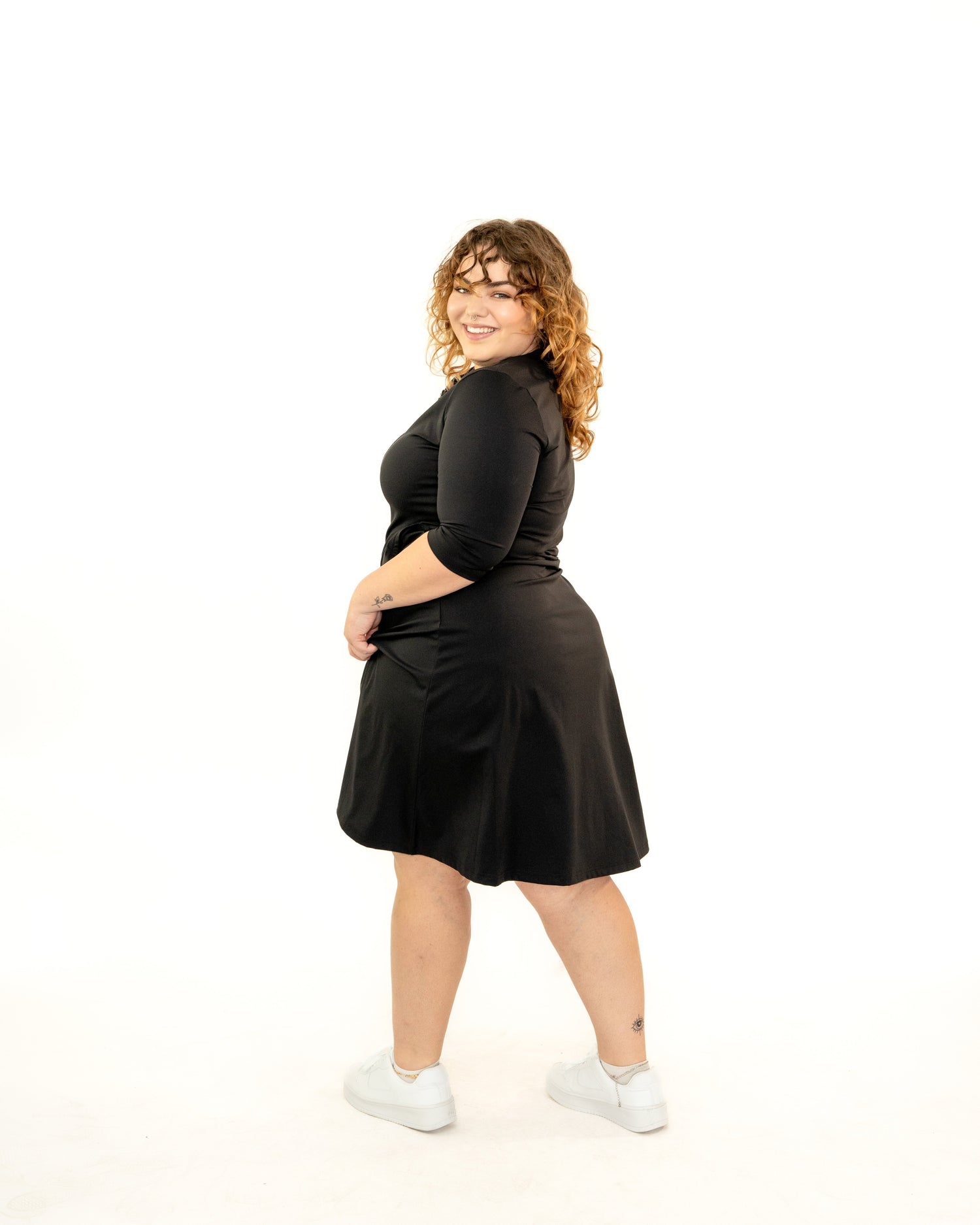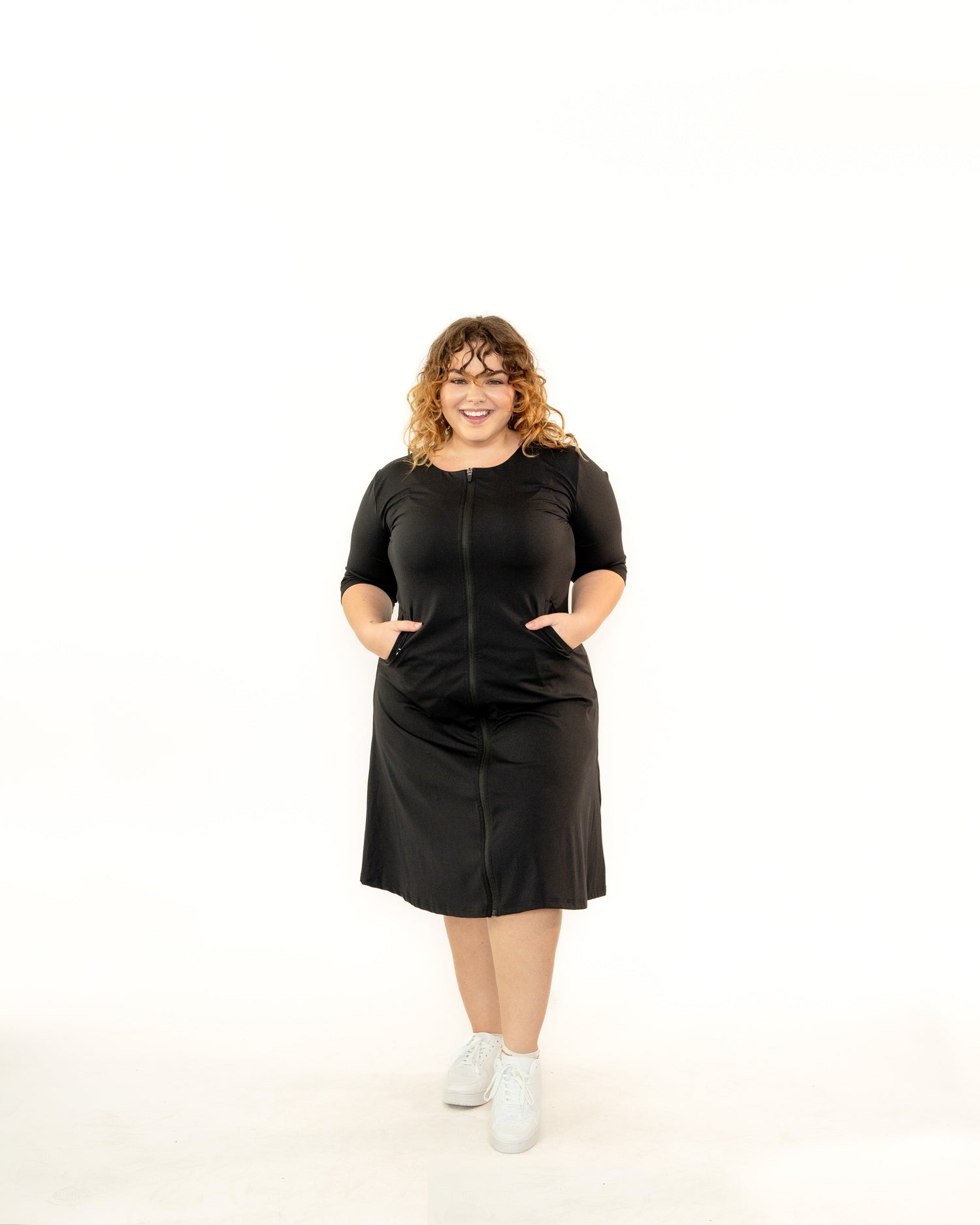 BLACK 3/4 SLEEVE QUICK ZIP DRESS