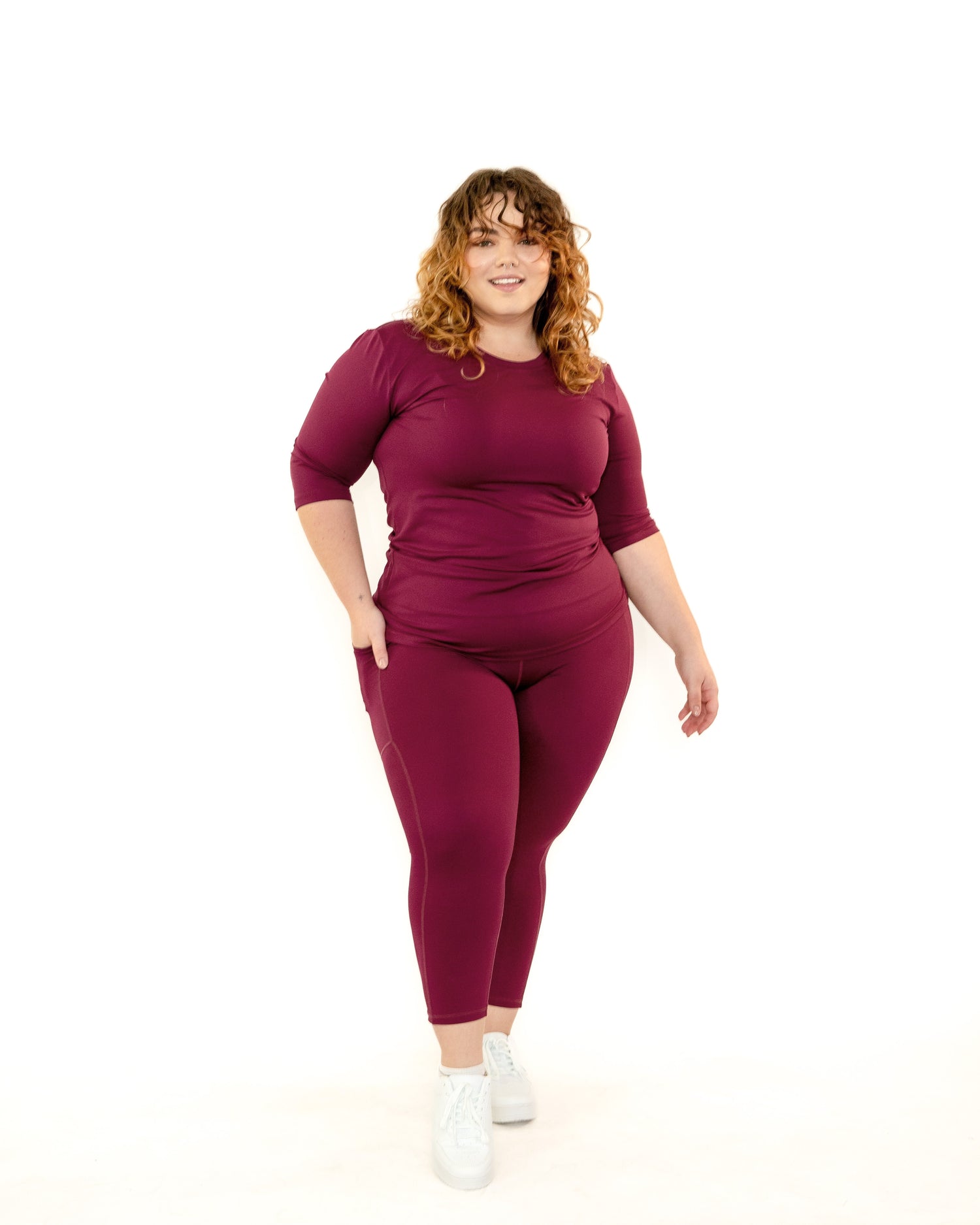Our 3/4 sleeve, crew neck shirt is designed with extra love for our modest ladies. Its soft and sweat wicking fabric is sure to leave you feeling extra comfortable and confident!