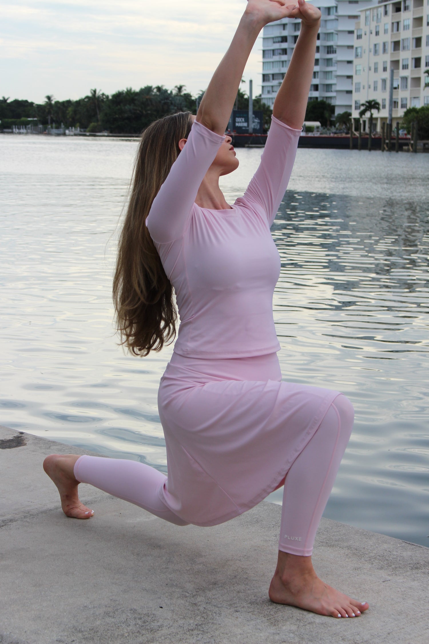 Our knee - length, sporty, high rise skirt is a must have item. Providing the wearer with both comfort and convenience, this soft, sweat wicking skirt includes a zipper pocket on the back to hold your cards, keys, or even your phone.
