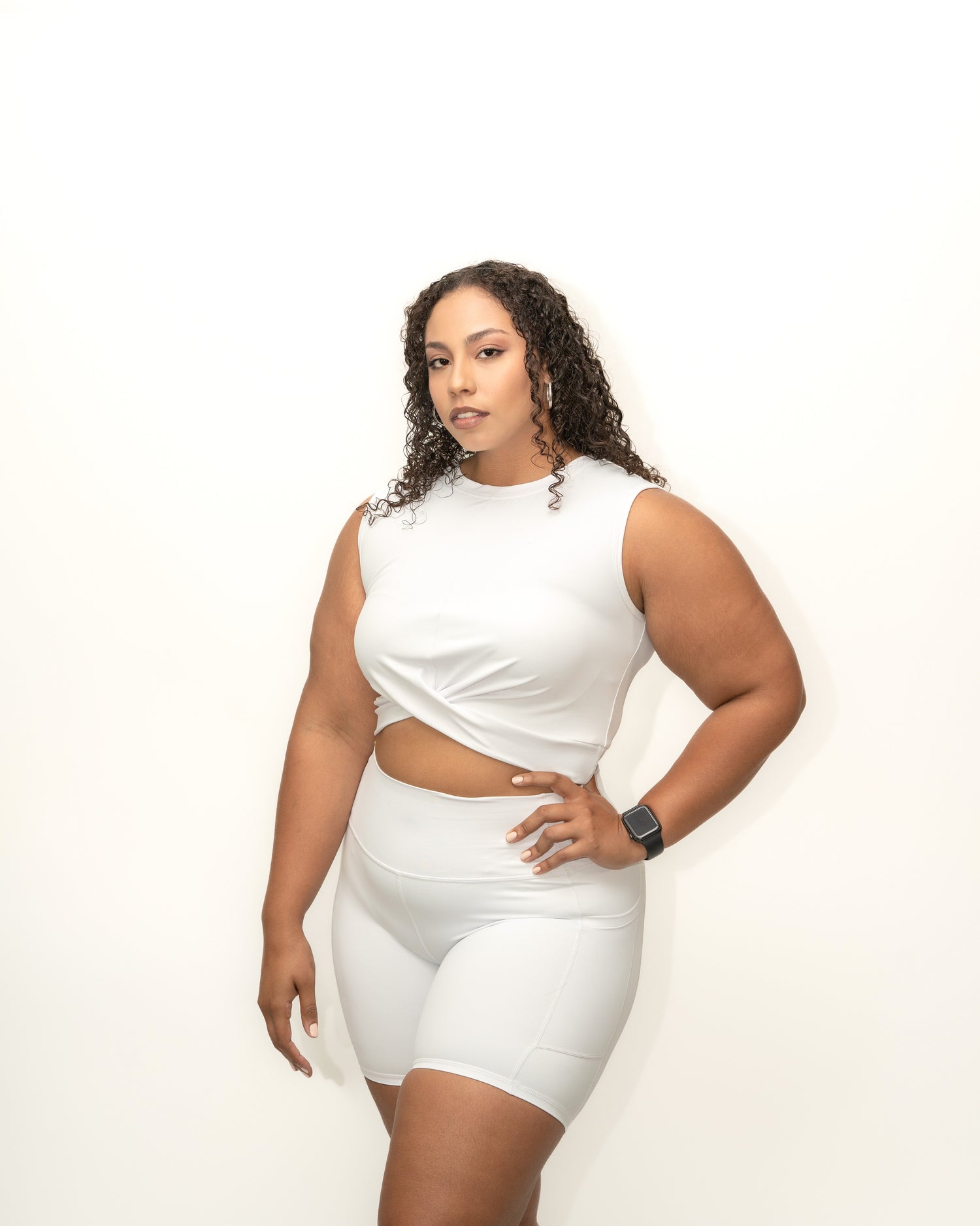 This sleeveless crop top with a twist, is sure to provide comfort to the wearer with its soft and sweat wicking fabric, promising to keep everything in place. With both its sporty and fashionable aesthetic, it serves as the perfect transitional, statement piece that can be worn both in and outside the gym.